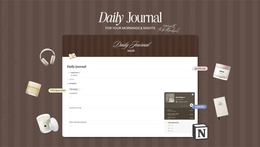 Daily Journal - Notion Template (gratitude, introspection, serenity)