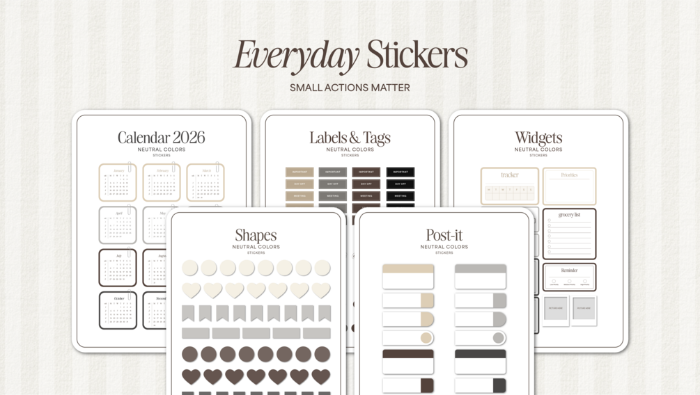 Our collection of digital stickers is the perfect tool to take your Goodnotes planners to the next level. These are more than just stickers; they are post-its, sticky notes 📝, lists, and essential widgets designed to help you organize important information, highlight tasks, and add an aesthetic touch to your agenda without the paper clutter 📌